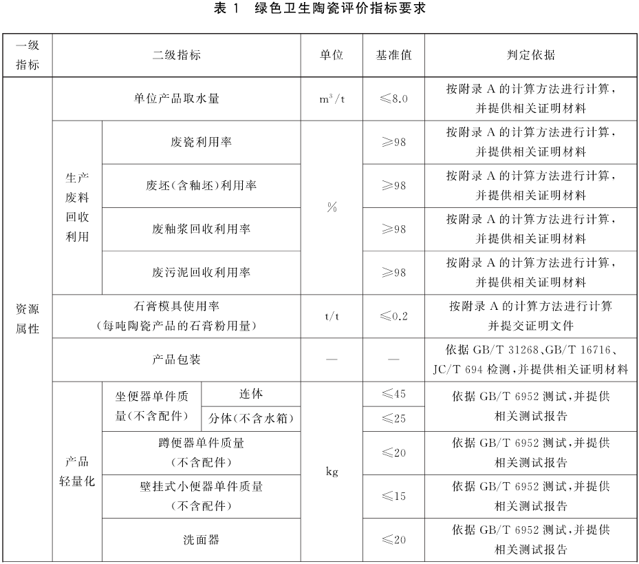 GB/T35603标准规定了卫生陶瓷绿色产品评价技术要求。