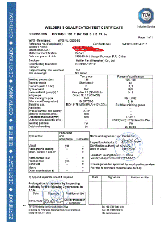 在PED、EN1090、EN15085、ISO3834等焊接体系认证中,或者企业接到国际性质的项目,都会涉及到焊接人员要取得ISO9606等国际焊工证的要求。考取国际焊工证需要由欧盟公告机构Notified Body授权检验员现场监督焊接,焊接件在通过焊接工艺评定试验后,可签发国际认可的焊工证。安普检测作为TUV认可的实验室之一,可签发TUV国际焊工证。