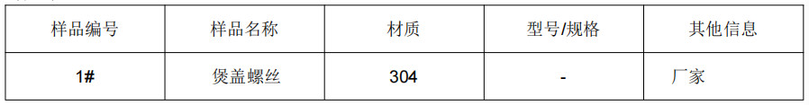 样品名称:煲盖螺丝304不锈钢成分分析