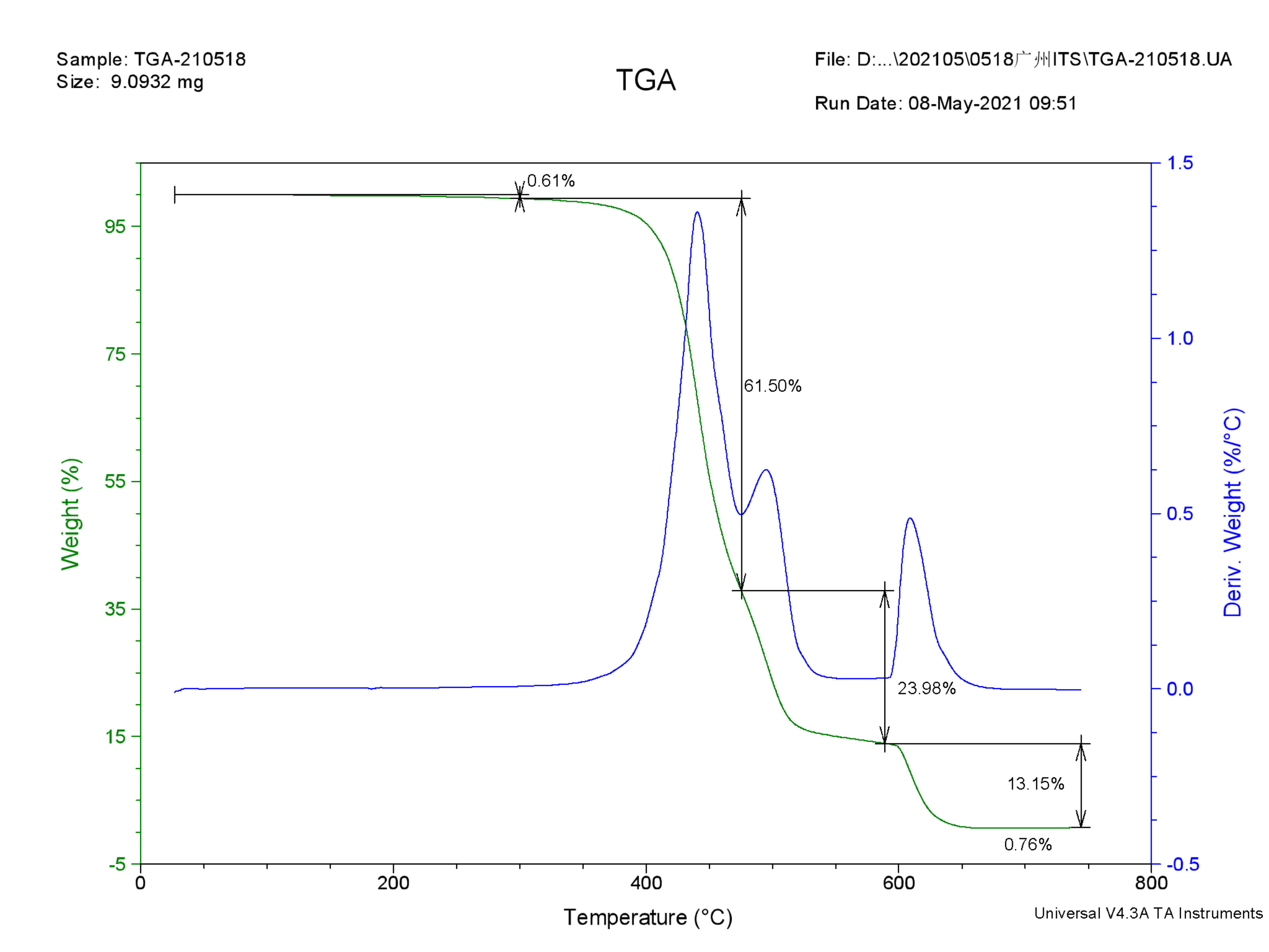 试验方法: ASTM D3850-12, 分析方法TGA.