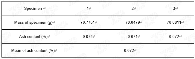 Test item测试项目: Ash content灰分含量