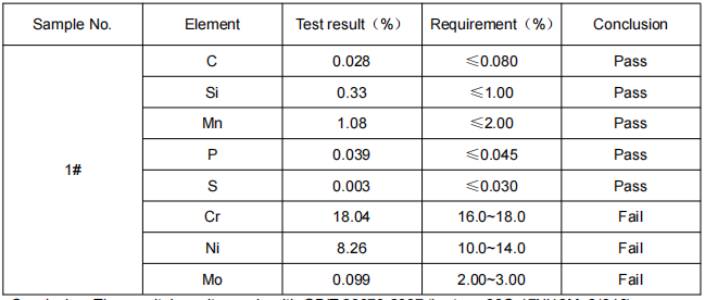 1、316不锈钢螺丝杆成分鉴定:通过仪器分析手段确定样品的成分及其比例后,通过对照所提供的材料牌号对应标准的要求,判定其是否符合标准要求。