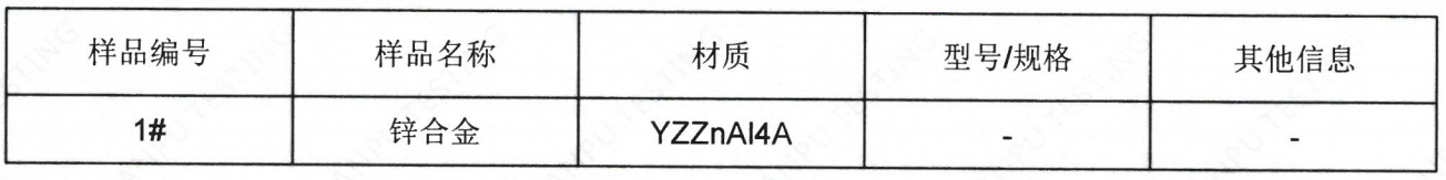 一、样品信息:YZZnAI4A锌合金成分分析-欧盟ROHS指令