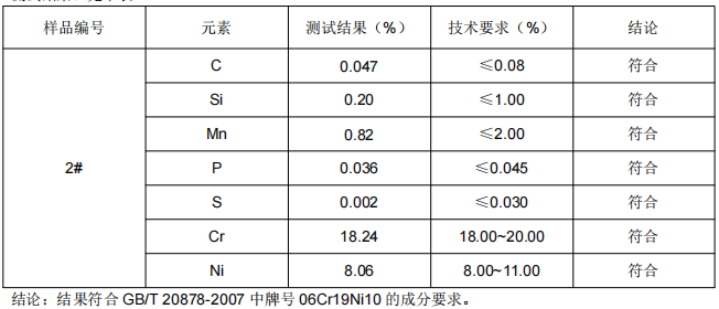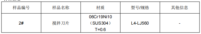 样品名称:搅拌刀片SUS304不锈钢成分分析