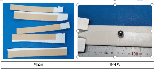 测试项目 | 滚球滚动距离/mm | 客户要求 | 结论 | |||||