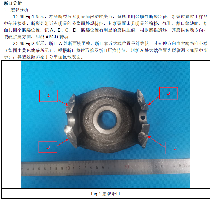 金属断口分析测试目的:评定断口形貌,找出裂纹源,发现钢材本身缺陷和生产工艺中存在的问题。