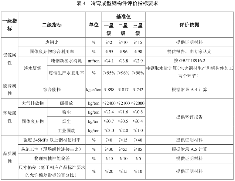 热轧钢构件评价指标要求见表2, 焊接钢构件评价指标要求见表3, 冷弯成型钢构件评价指标要求见表4,钢构件辅助件评价指标要求见表5。