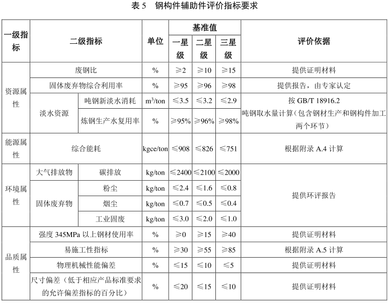 钢结构房屋用钢构件评价指标包括资源属性指标、 能源属性指标、 环境属性指标和品质属性指标。