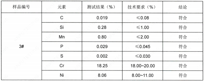 一、自攻螺丝不锈钢SUS304成分鉴定:通过仪器分析手段确定样品的成分及其比例后,通过对照所提供的材料牌号对应标准的要求,判定其是否符合标准要求。