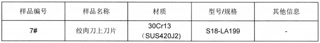 样品信息:绞肉机刀片不锈钢SUS304成分分析